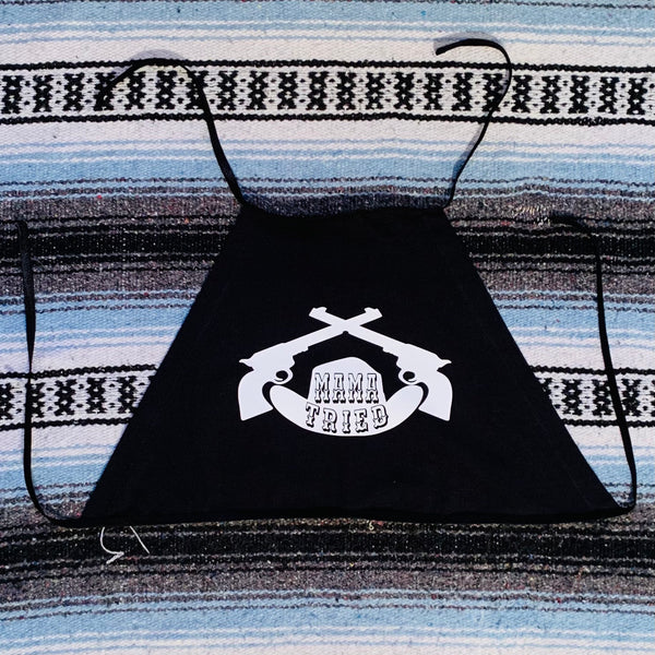 Vintage biker culture inspired Mama Tried Halter top on 100% cotton with elastic trim neck tie and waist tie ⚔️